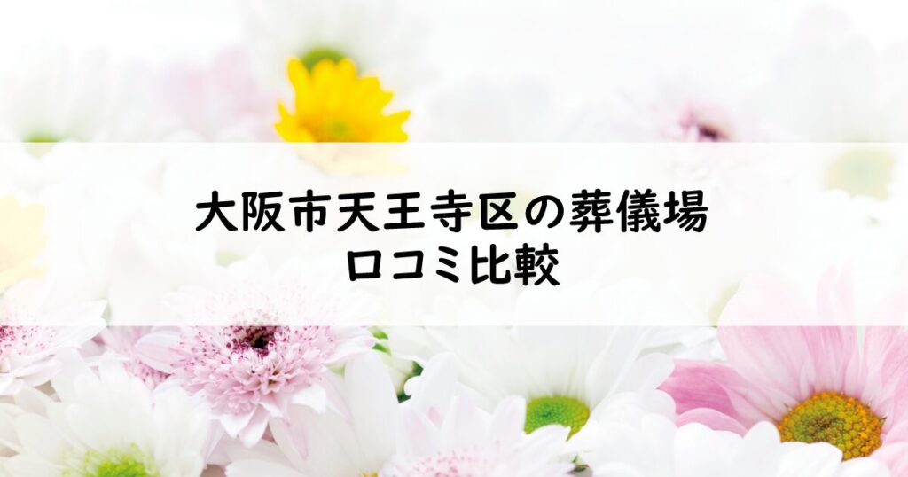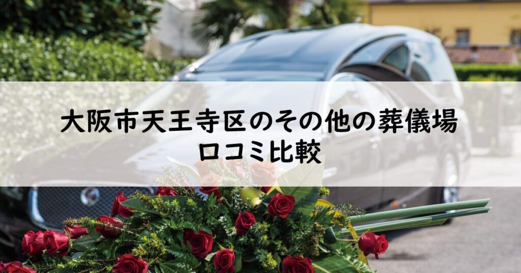 大阪市天王寺区の「愛ホール 夕陽丘」は親切なサービス、価格が良心的と評判の葬儀場です。銭辰堂が運営している葬儀ホールです。その周辺にさまざまな特色を持つ葬儀場があります。「かなたや」は地元密着の大正時代から続いている様々な宗派(仏教、神道、キリスト教など)に対応しています。急ぎでなければ、よりそうお葬式の資料を請求して、評判のよい葬儀社と比較検討してもよさそうです。